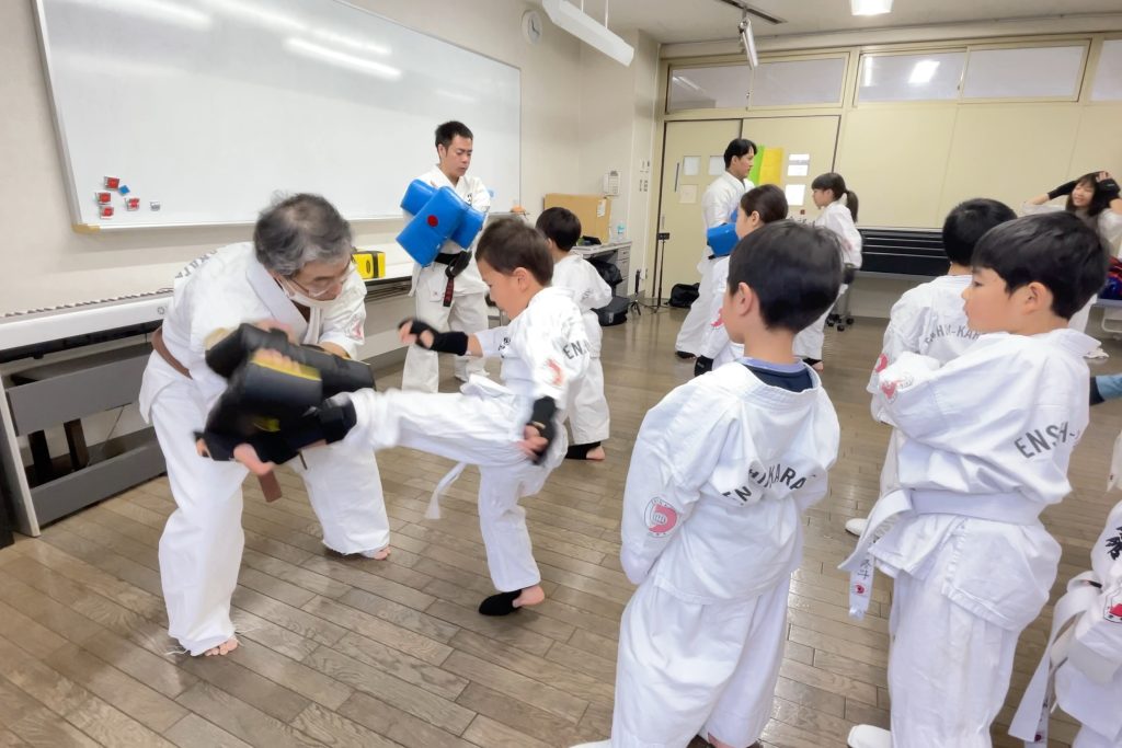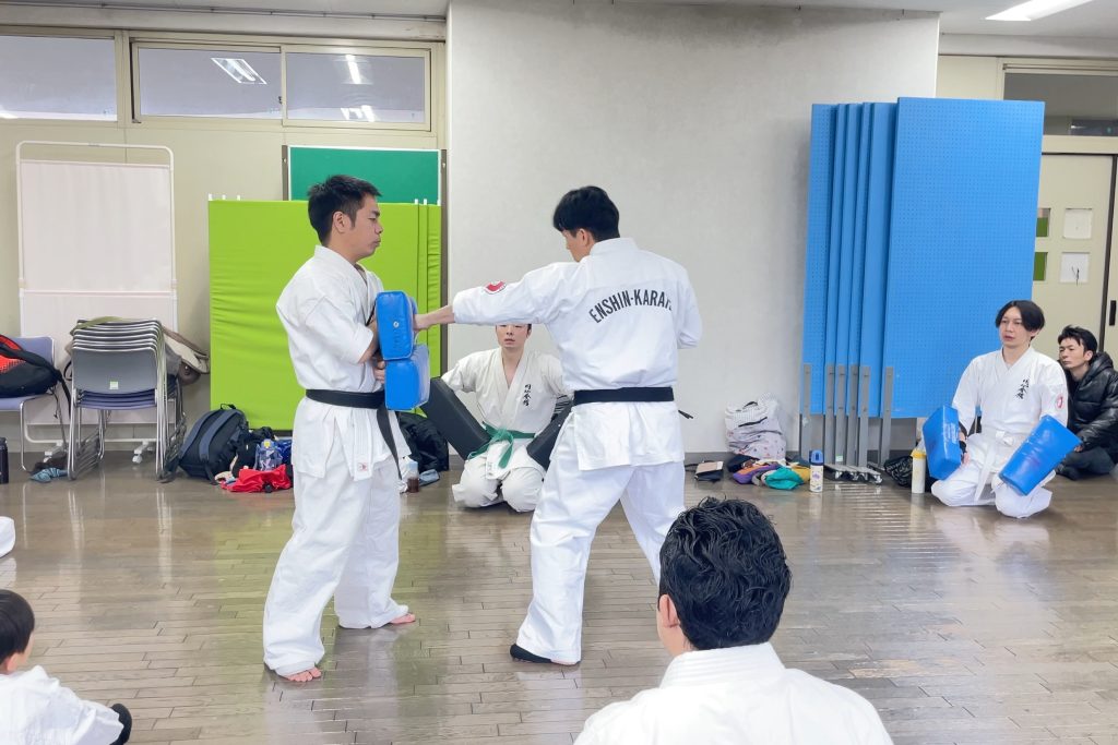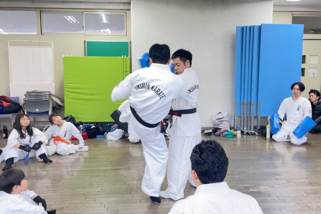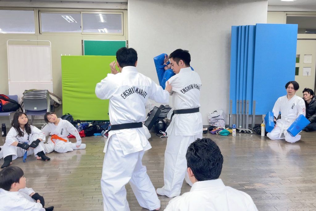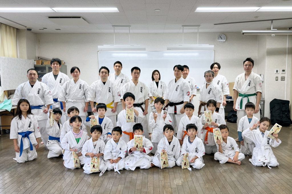 途中、参加してくれた子供達にお菓子を配りテンション上がったところで、翌日の審査会に向けて型の最終調整を行いました、、、ちょっと怪しいが(結果は一つ前の投稿で)